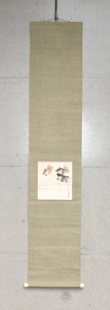 - 42◆初荷です ◆掛軸 権藤種男 「金魚」 小品 真作 紙本 ◆保存箱