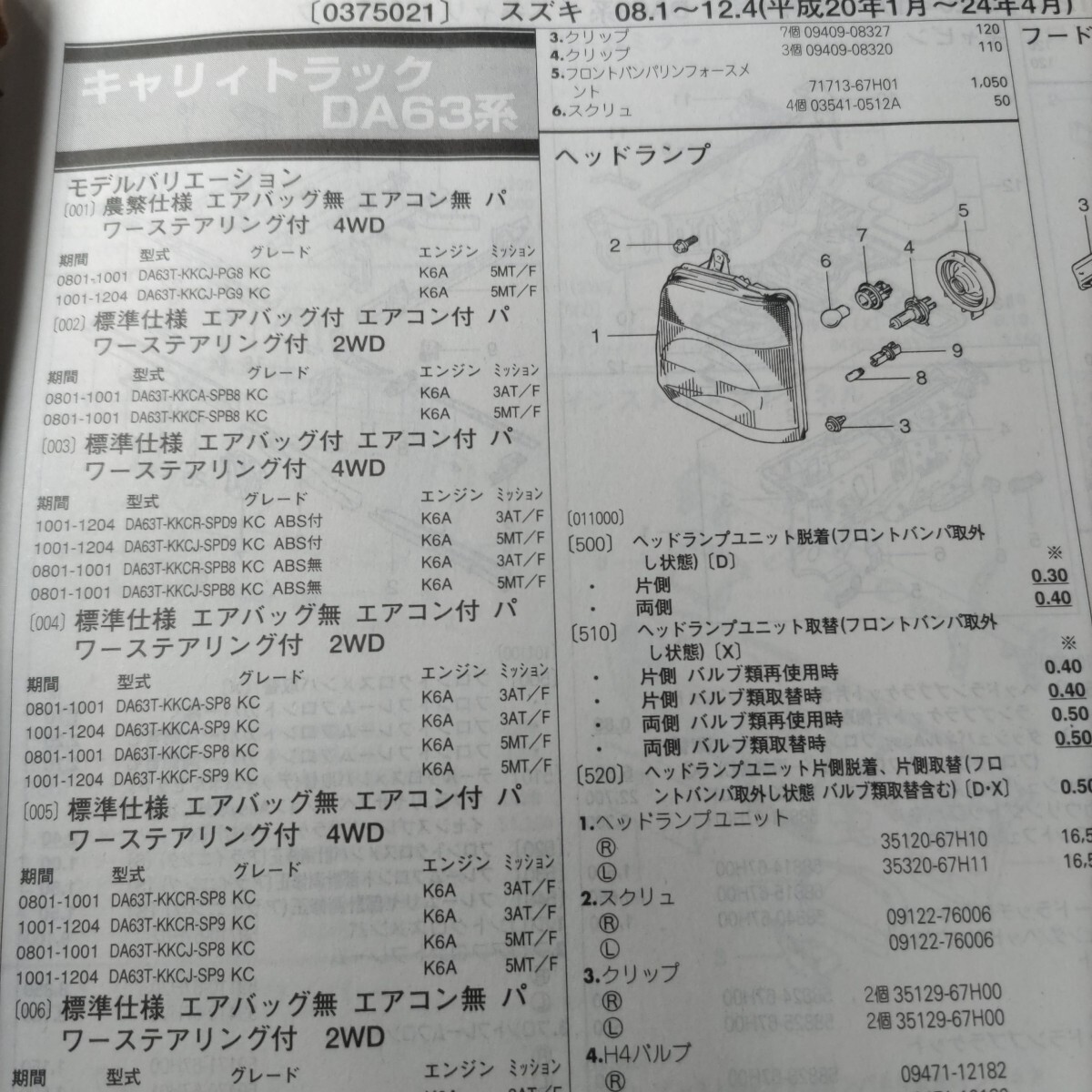 > ■■【パーツガイド】 スズキ キャリィトラック (DA63系) H20.1~H24.4 2013年後期版 【絶版・希少】