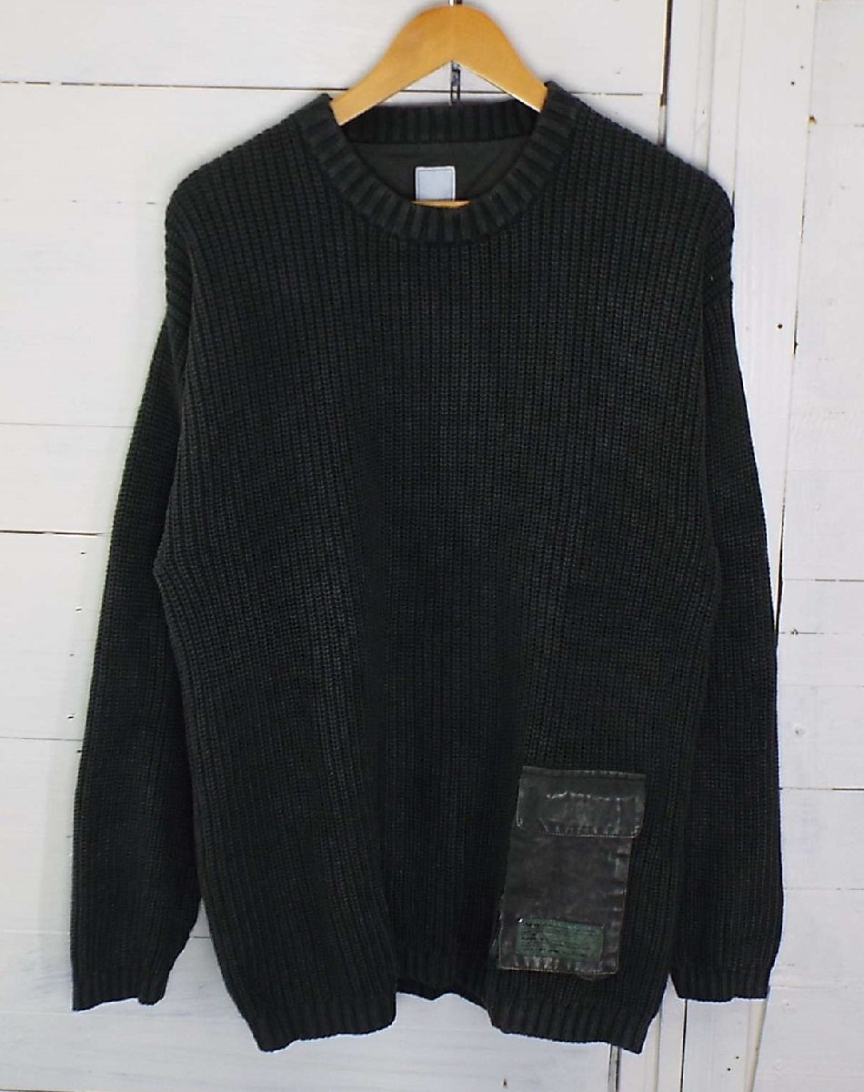 > T3369〇Liberaiders(リベレイダース)ニット 長袖 ガーメントダイ プルオーバー ミリタリー コットン カーキ Mサイズ
