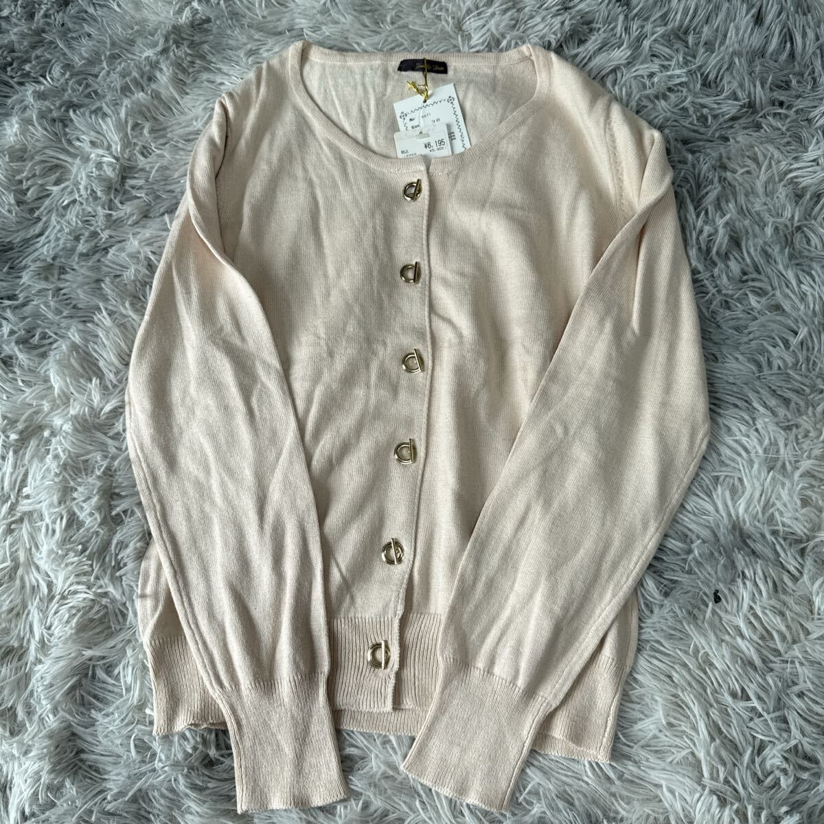 - デザインボタン薄手カーディガン薄ピンク38☆未使用48