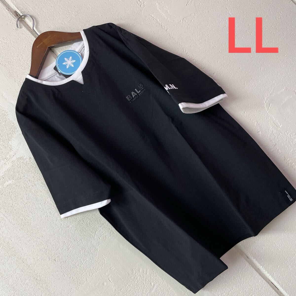 - 訳ありLLサイズメンズBALL接触冷感サラサラストレッチ発泡プリント半袖Tシャツ黒