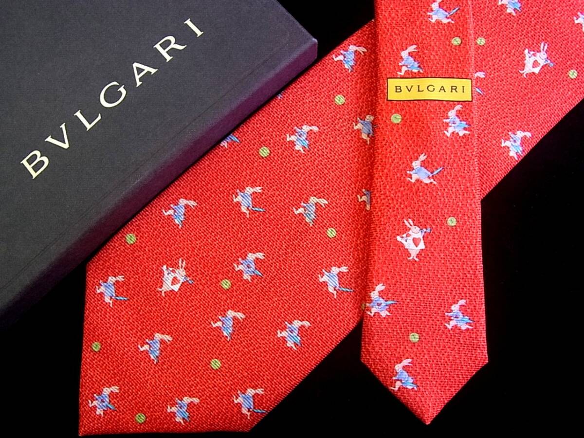 - 5G0709【超特売】【BVLGARI】ブルガリ 【不思議の国のアリス シリーズ・兎・ウサギ・ハートトランプ】「最高級セッテピエゲ」 ネクタイ