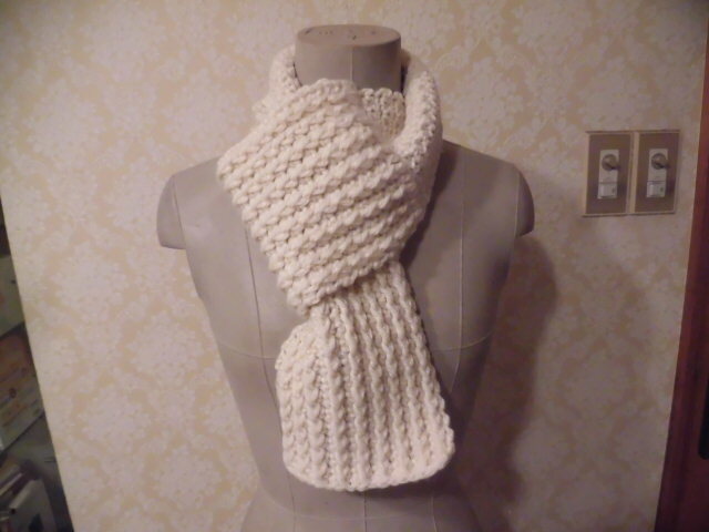 - ☆手編みマフラー20BB123☆ベージュ☆かぎ針編みのミニマフラー