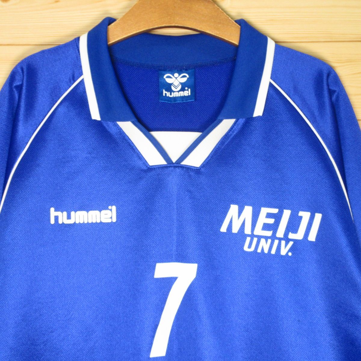 - ◎美品!明治大学 サッカー部 hummel ヒュンメル ゲームシャツ 長袖 ドライ 支給品 実使用 ユニフォーム メンズ 青 Lサイズ◆AA4654