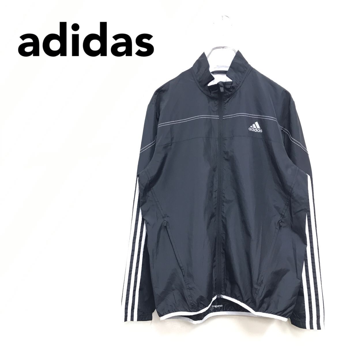 > 2K3343-R-N◆adidas アディダス ジップアップナイロンジャケット◆サイズL メンズ 紳士 ライトアウター スポーツ 秋冬 ブラック 黒