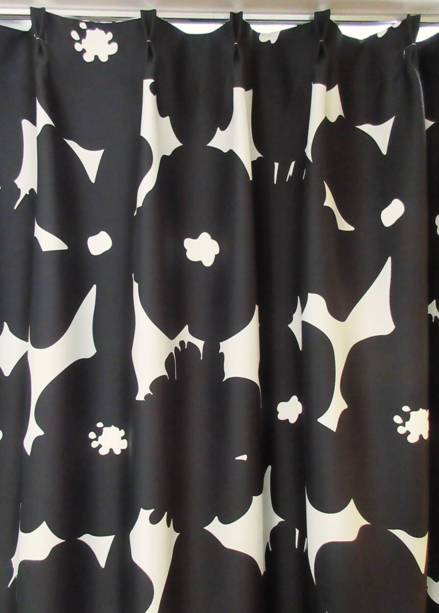 - 【日本製 (KM4053)】省エネ 断熱 花柄 プリント ウォッシャブル カーテン 幅150cmX丈220cm(2枚入)