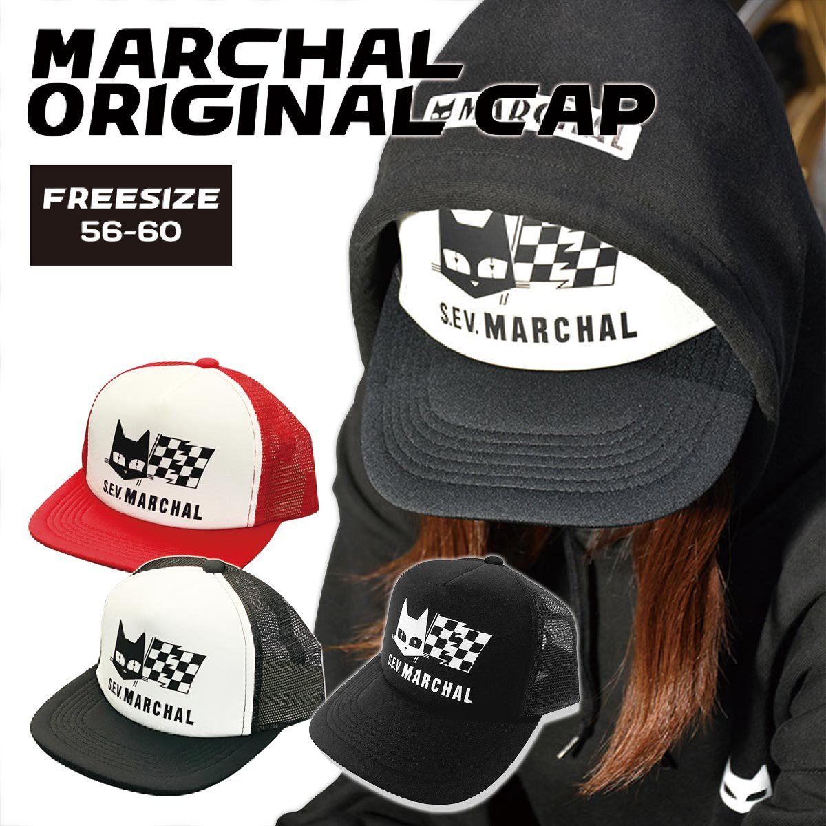 > マーシャルオリジナル キャップ フラッグ 黒×白 フリーサイズ 56~60cm 帽子 旧車 バイク 単車 ツーリング 800-3001