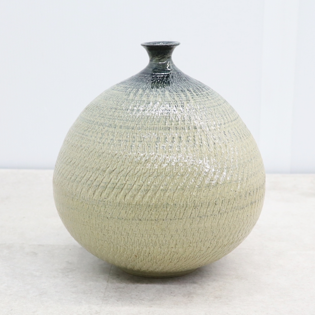 - ◆ 陶磁器|都波 作 壺 花器 飾壺 飾り壺 |白石焼 佐藤都波|波打 花生 花入 骨董 古美術 コレクター収蔵品■O9107