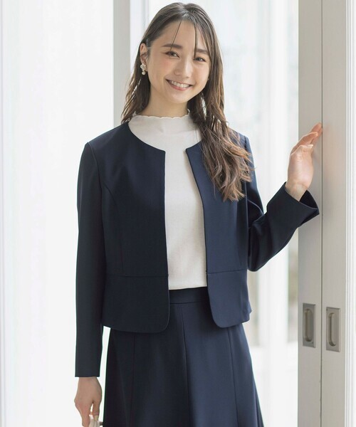 - 「ANY SIS」 ノーカラージャケット 1 ネイビー レディース