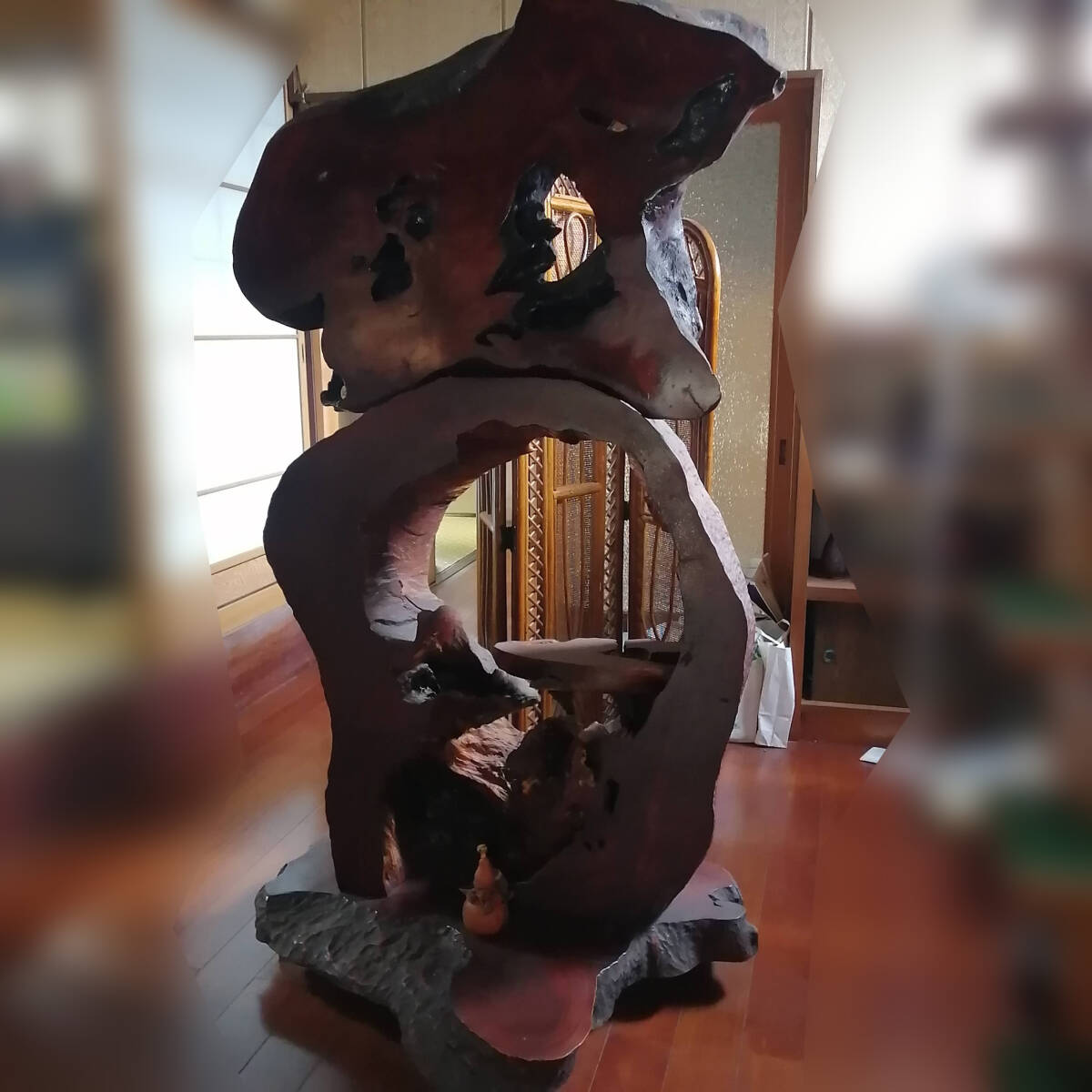 > 引き取り限定! 値下げ交渉可能!兵庫県北部 置物 天然木 インテリア アンティーク 銘木 瘤材 花台 飾り台 大型 木工芸 オブジェ 床の間