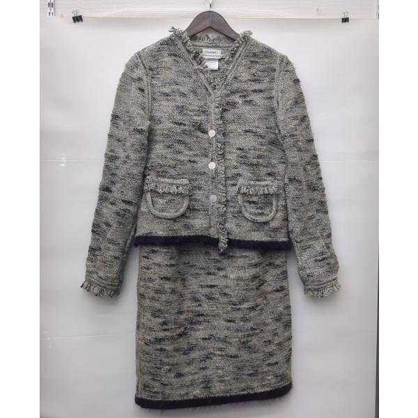 > CHANEL シャネル セットアップ ウール サイズ上42・下40 グレー P13996V00662 P14369V00662 秋冬物 フリンジ ◆2005