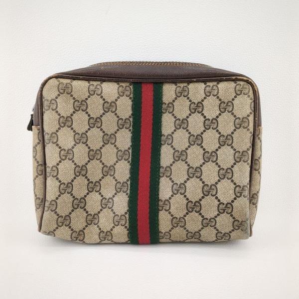 > 希少】オールドグッチ ポーチ 小物入れ シェリーライン ベージュ×ブラウン OLD GUCCI PARFUMUS ユニセックス ◆2005