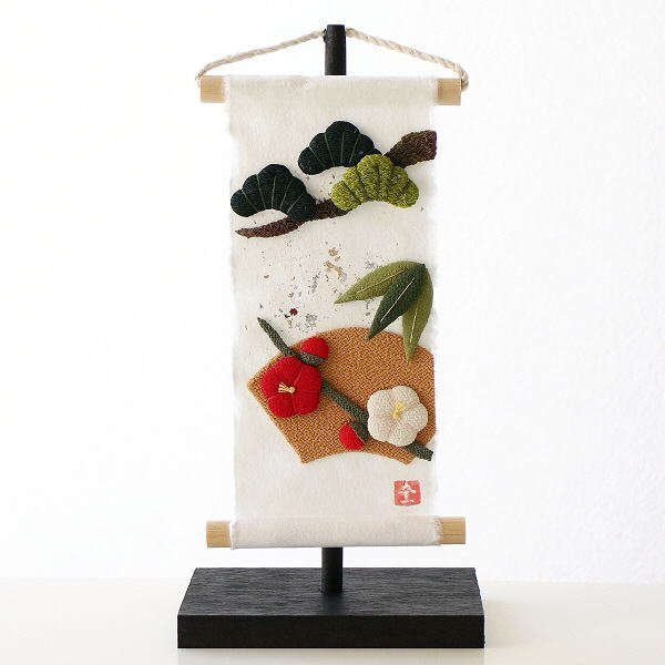 - タペストリー 置物 オブジェ お正月 ちりめん細工 おしゃれ 日本製 台付きミニタペストリー 松竹梅 送料無料(一部地域除く) mzk4652