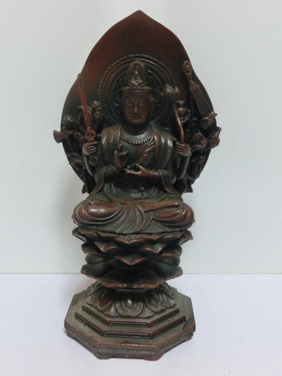 - 千手観音菩薩 仏像 高さ約14.5㎝ 重量約752g 仏教美術 置物 オブジェ 素材不明 鋳物 千手観音