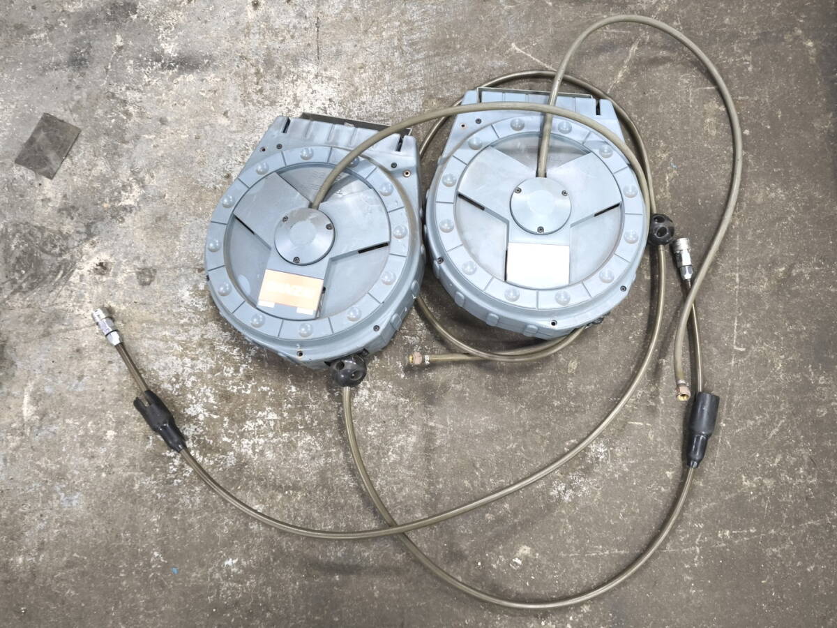 > 13573 中古 ジャンク エアホースリールセット 2個セット 延長 空気入れ ツール 壁掛け 吊り下げ カーメンテナンス 自動車整備工具