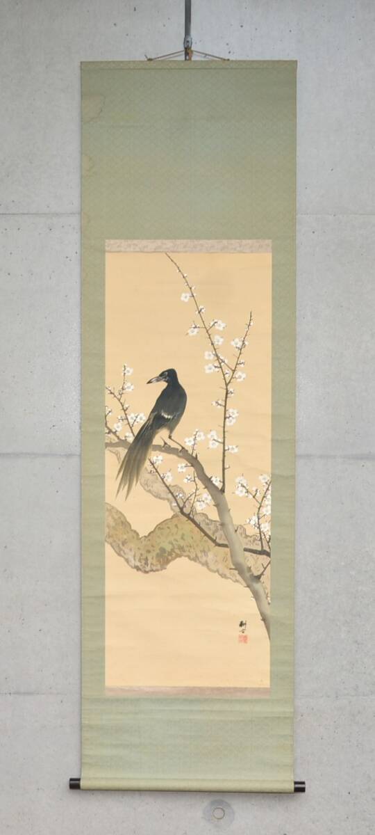 - 【模写】 89◆初荷です ◆掛軸 耕古 白梅に烏 絹本 ◆保存箱(痛みあり) 箱と中身は違います