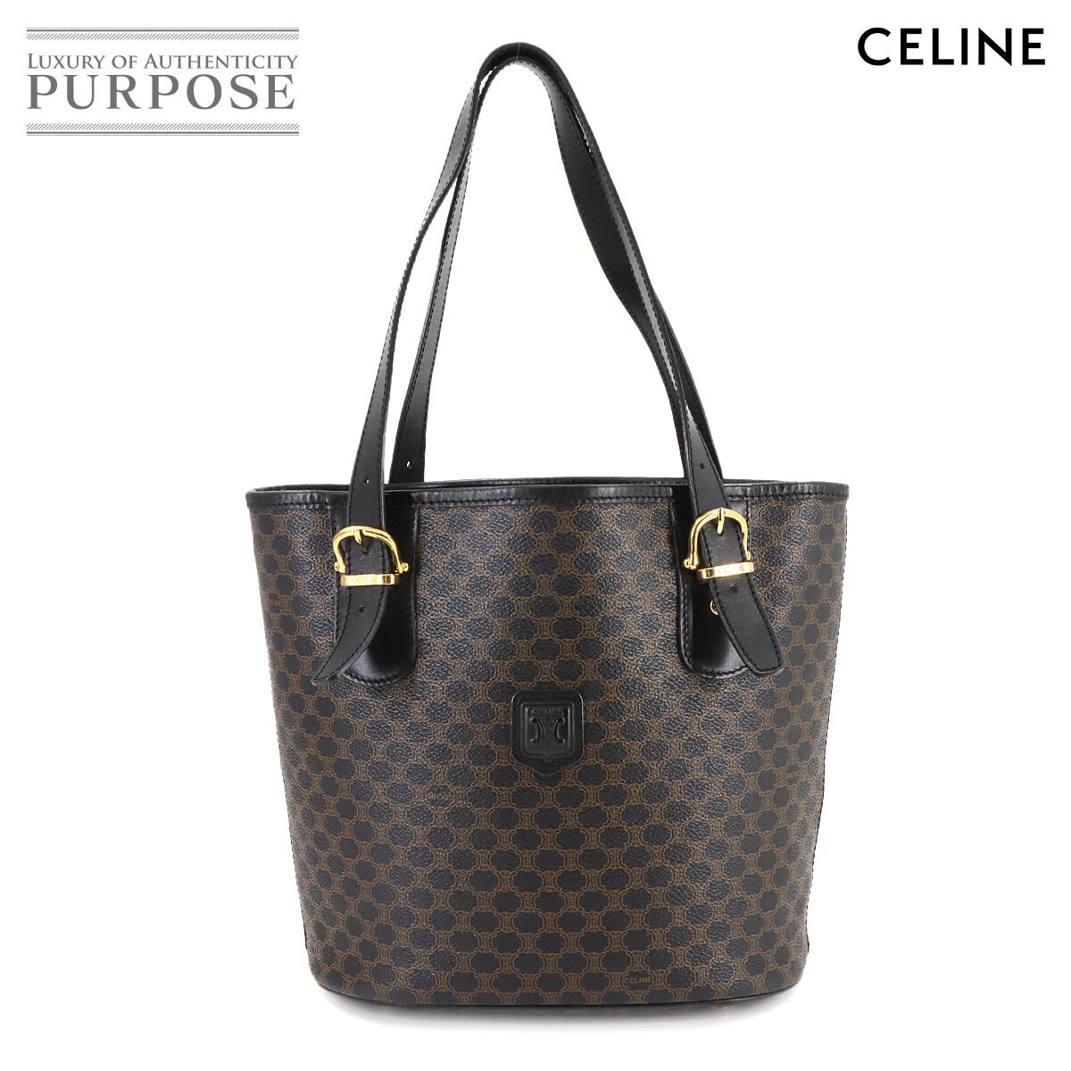> 美品 セリーヌ CELINE マカダム トート バッグ ブラック ブラウン PVC レザー ゴールド 金具 ヴィンテージ Macadam Tote Bag 90296020