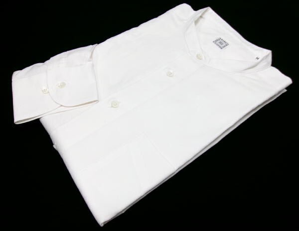 - 新品★麻布テーラー★日本製 バンドカラーシャツ ノーカラーシャツ★Mサイズ ホワイト 綿100%