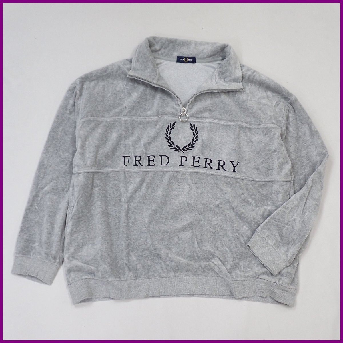 - ★美品 FRED PERRY/フレッドペリー ベロア ハーフジップトップス メンズL/杢グレー/ロゴ刺繍/コットン&2113000002
