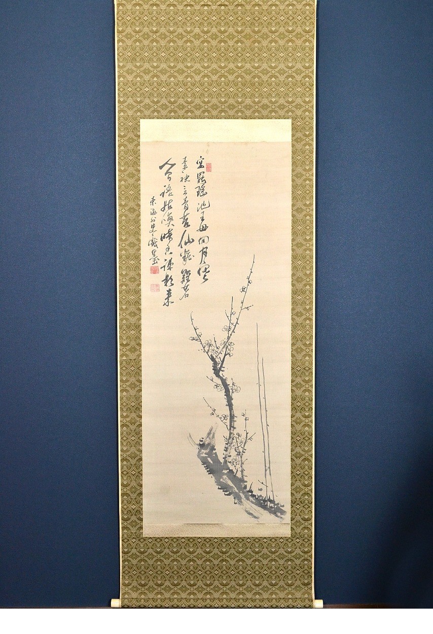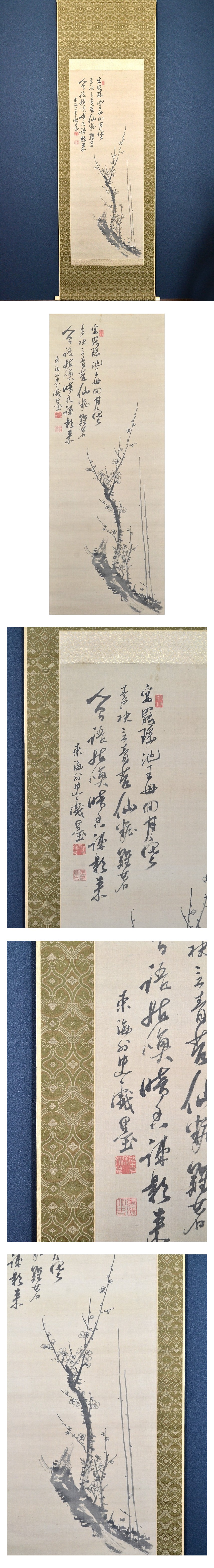 - 土佐藩15代藩主,外様大名 山内容堂 絹本「墨梅画賛」真作 幕末四賢侯の一人 山内豊信 山内豊茂 大政奉還に活躍 茶道具 茶掛け 掛軸 掛け軸