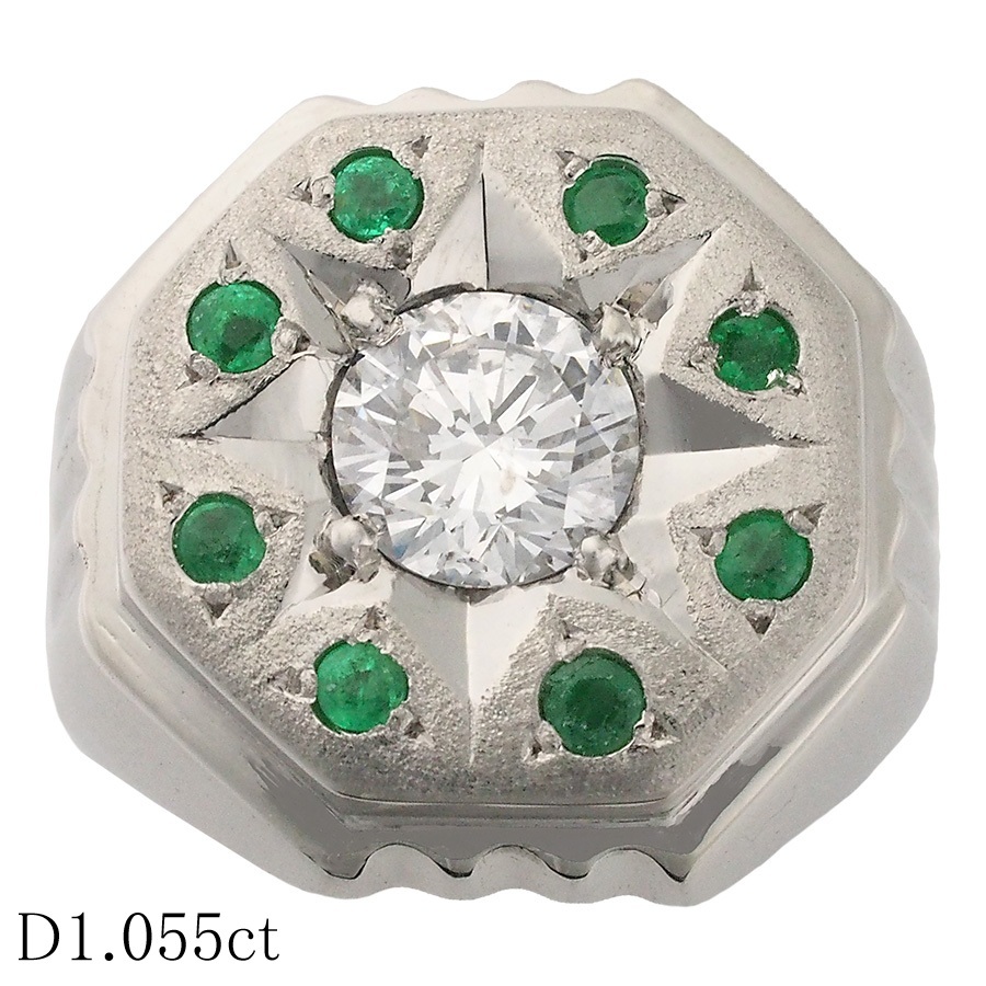 - E-SI2-G ダイヤモンド/1.055ct エメラルド 印台 メンズ シグネット リング Pt900 15号 鑑別書付