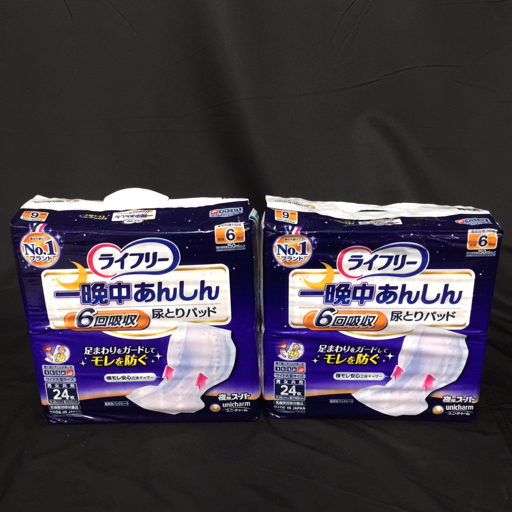> 新品同様 ユニチャーム ライフリー 一晩中あんしん 尿とりパッドスーパー 24枚入り 巾28cm×長さ60cm 男女共用 2パック