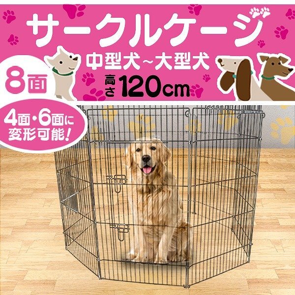 - 新品 ペットサークル 柵 フェンス 8面サークル 高さ120cm 出入口付き 中型~大型犬 ペットゲージ トレーニングサークル 犬小屋 簡単組立