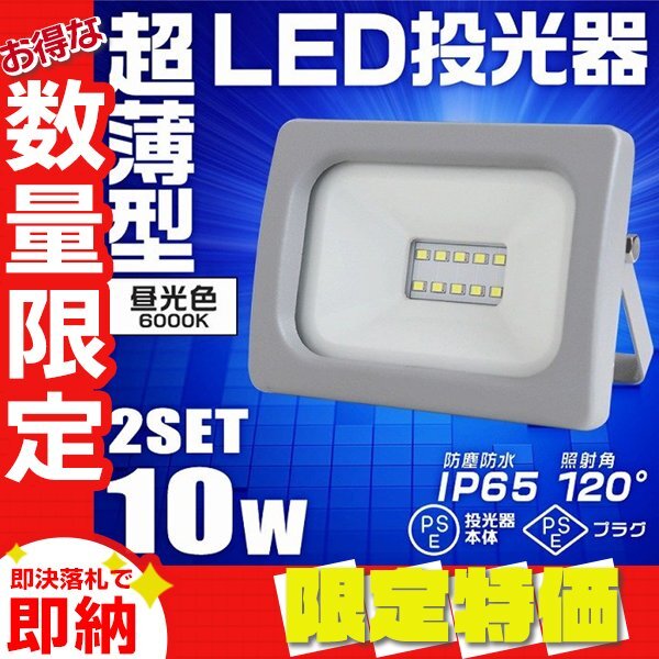 - 【限定セール】2台セット LED投光器 昼光色 10W PSE取得 広角120度 IP65 3mコード LEDライト 作業灯 防犯灯 ワークライト 集魚灯