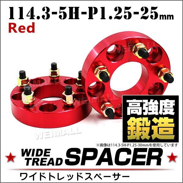 - Durax正規品 ワイドトレッドスペーサー 114.3-5H-P1.25-25mm ナット付 赤 1C ホイール スペーサー ワイトレ 日産 スズキ スバル 2枚セット