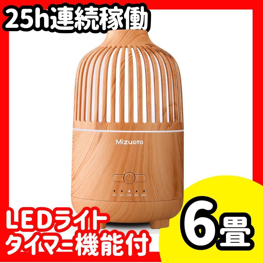 - 加湿器 小型 卓上 アロマ 25h LED タイマー 静音 除菌 6畳 超音波式 省エネ お手入れ簡単 コンパクト 寝室 空焚き防止 乾燥対策 木目
