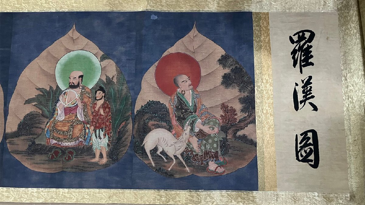 - 中国書画 中国現代美術品 長巻 [羅漢図] 書画 立軸 巻き物 中堂画 装飾 掛絵 ZH217
