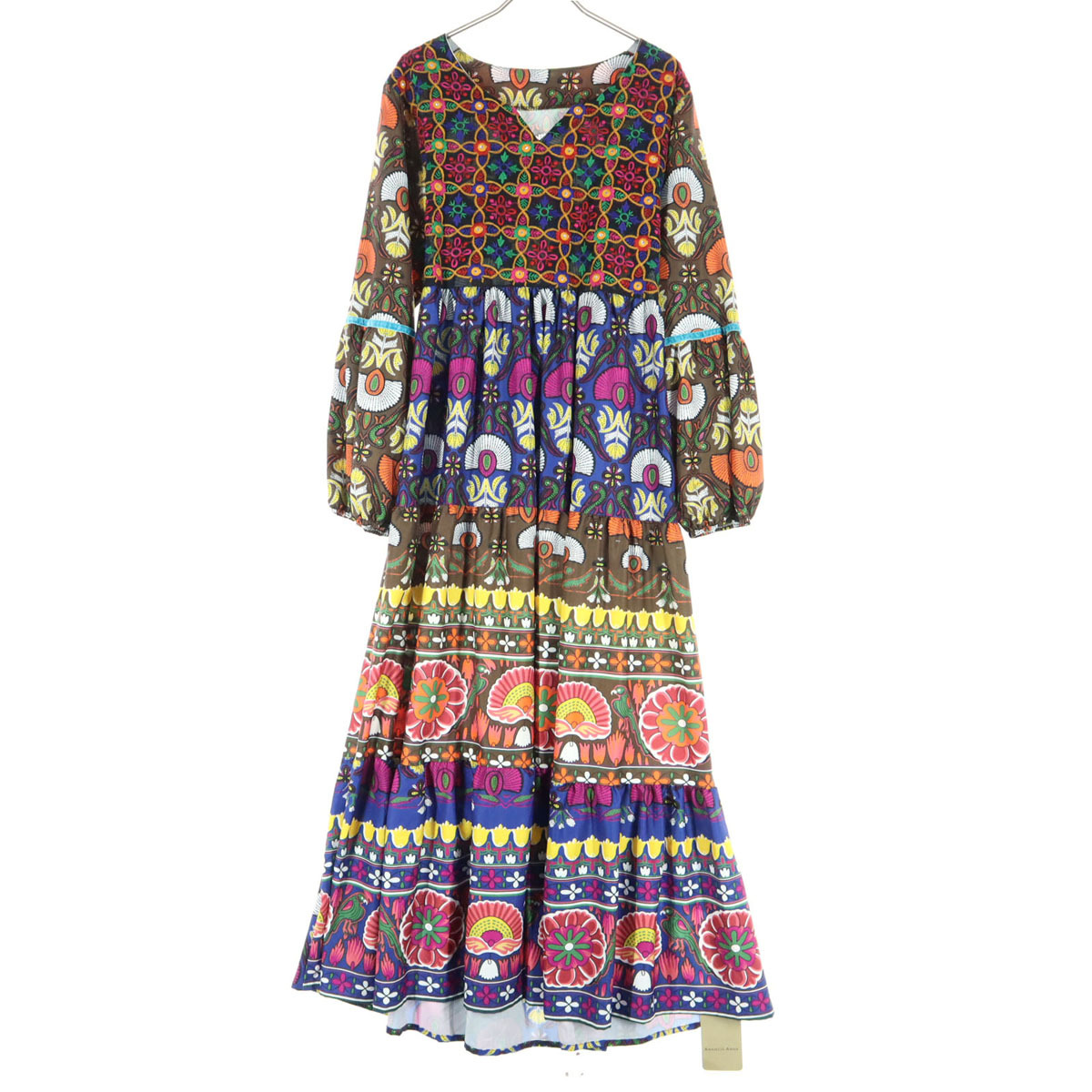 未使用 ARANCIO ARAN アランチョアラン 総柄 長袖 Vネック ワンピース F ブラウン系 レディース