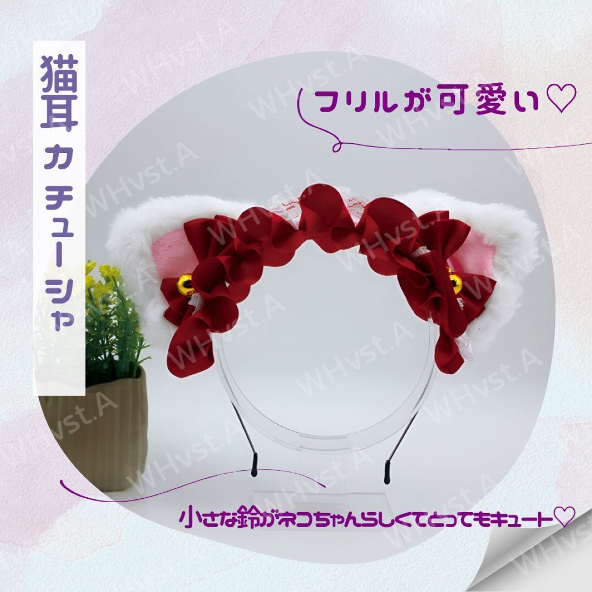 - 猫耳 ねこ耳 カチューシャ レッド ヘッドドレス リボン コスプレ ふわふわ イベント 撮影