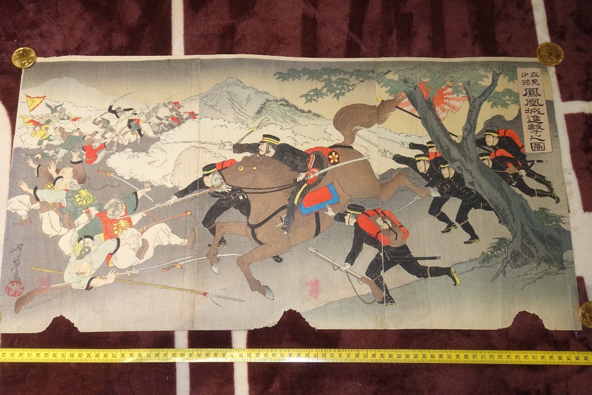 - rarebookkyoto 日清戦争錦絵・浮世絵木版画・峰栄作・立見小将鳳凰城進撃之圖・三枚セット・明治・李朝 1894年 京都古物