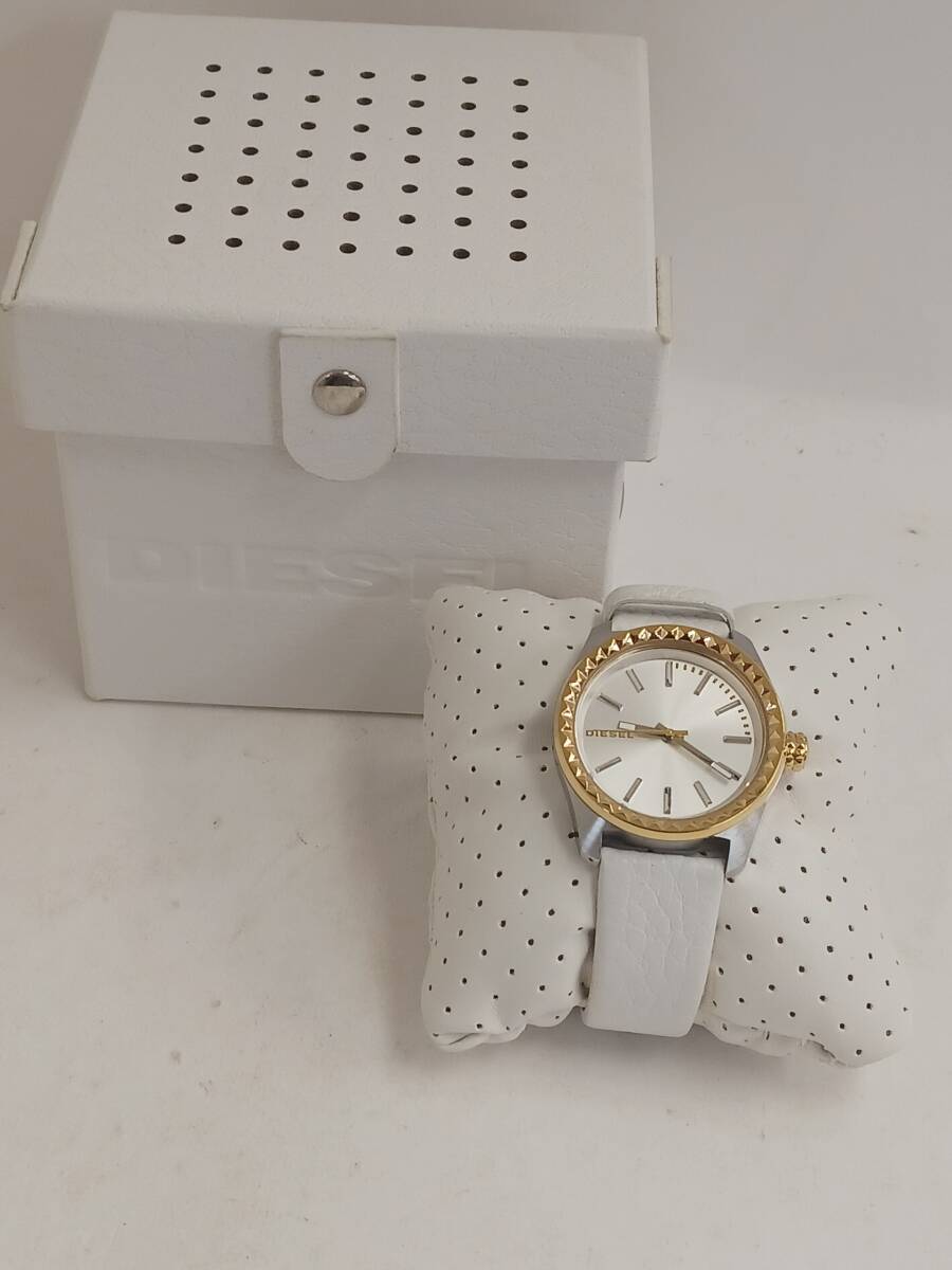 - 【中古美品】DIESEL ディーゼル レディース腕時計 KRAY KRAY DZ5410 動作未確認 ホワイト レザー BOX付 本物保証 正規品 人気モデル(す)