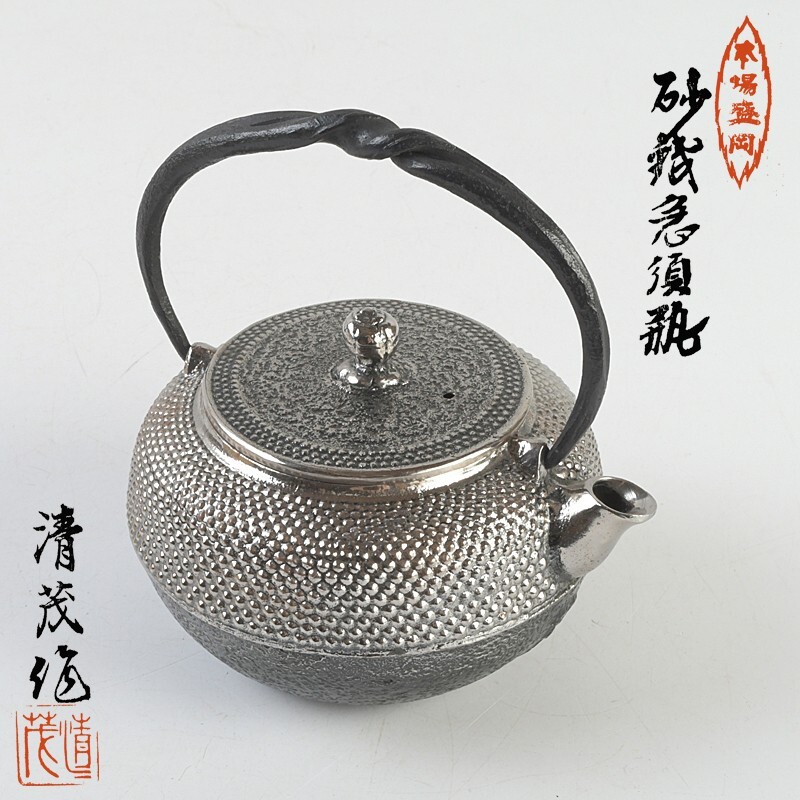 - 煎茶道具 南部鉄器 岩鋳 清茂作 砂鉄急須瓶 鉄瓶 鉄壷 共箱 IGBL