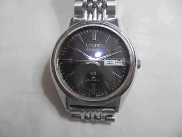 - 中古稼働品 SEIKO グランドセイコー 25石 自動巻 5646-7010 黒文字盤 メダリオン 純正ベルト