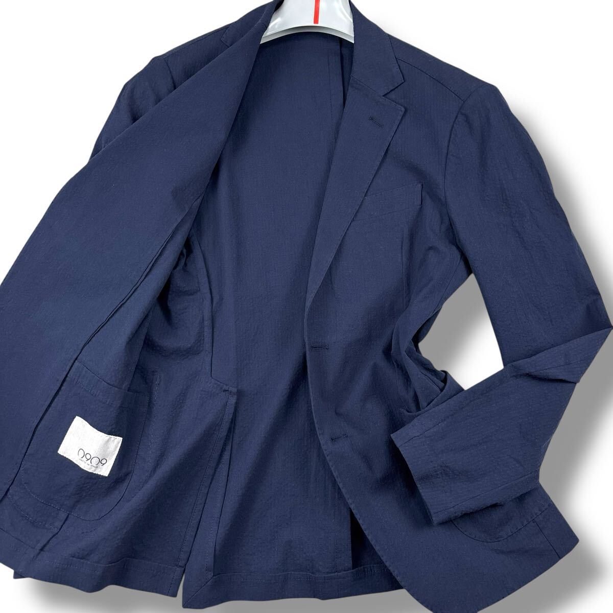> 1円 極美品 M~L ゼロノーベゼロノーベ 0909 テーラードジャケット 2B アンコン ストレッチ シアサッカー イタリア製 メンズ ネイビー濃紺46