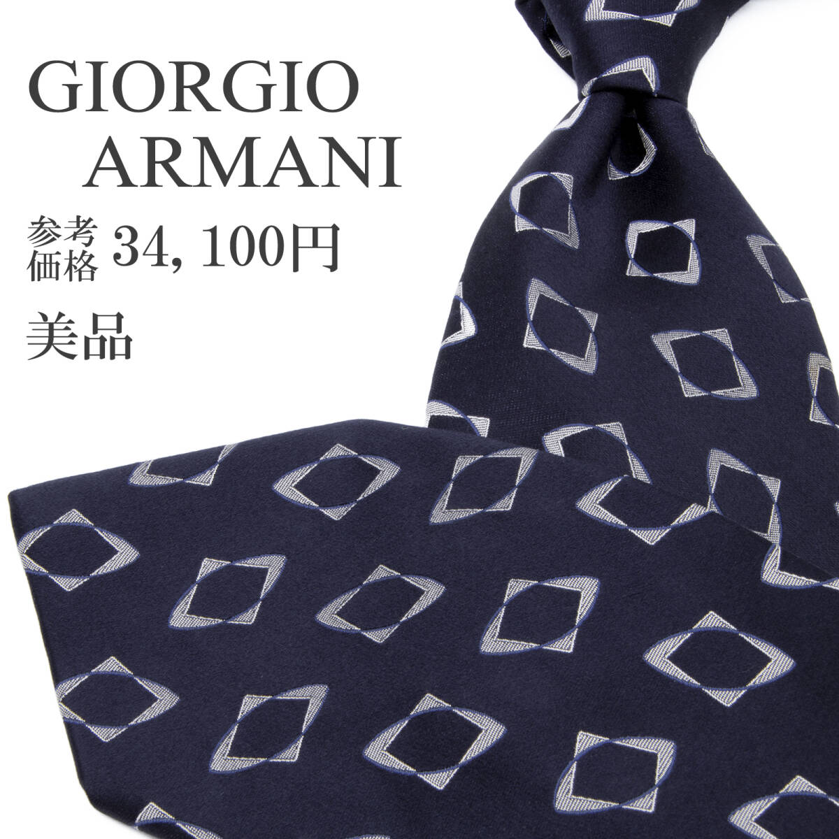 > 送料無料 ジョルジオアルマーニ ネクタイ ジャガード シルク ネイビーブルー シルバー 総柄 光沢 Y2K 00s ブランド イタリア製 綺麗 P519