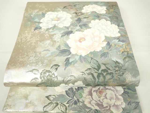 > 平和屋着物▼六通柄袋帯 唐織 牡丹文 銀糸 引箔 正絹 逸品 DAAX3203az
