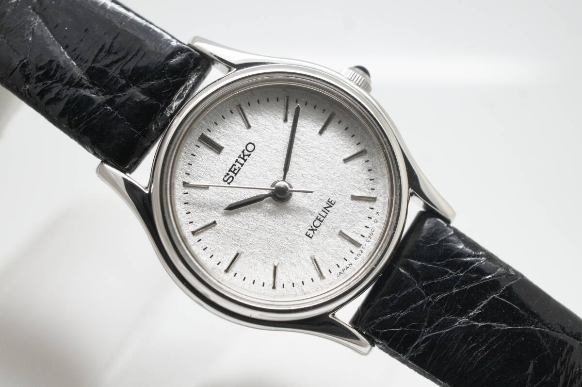 - J64●作動良好 美品 SEIKO セイコー EXCELINE エクセリーヌ 4N21-0390 ラウンドケース型 レディース腕時計 シルバー×黒ベルト クォーツ