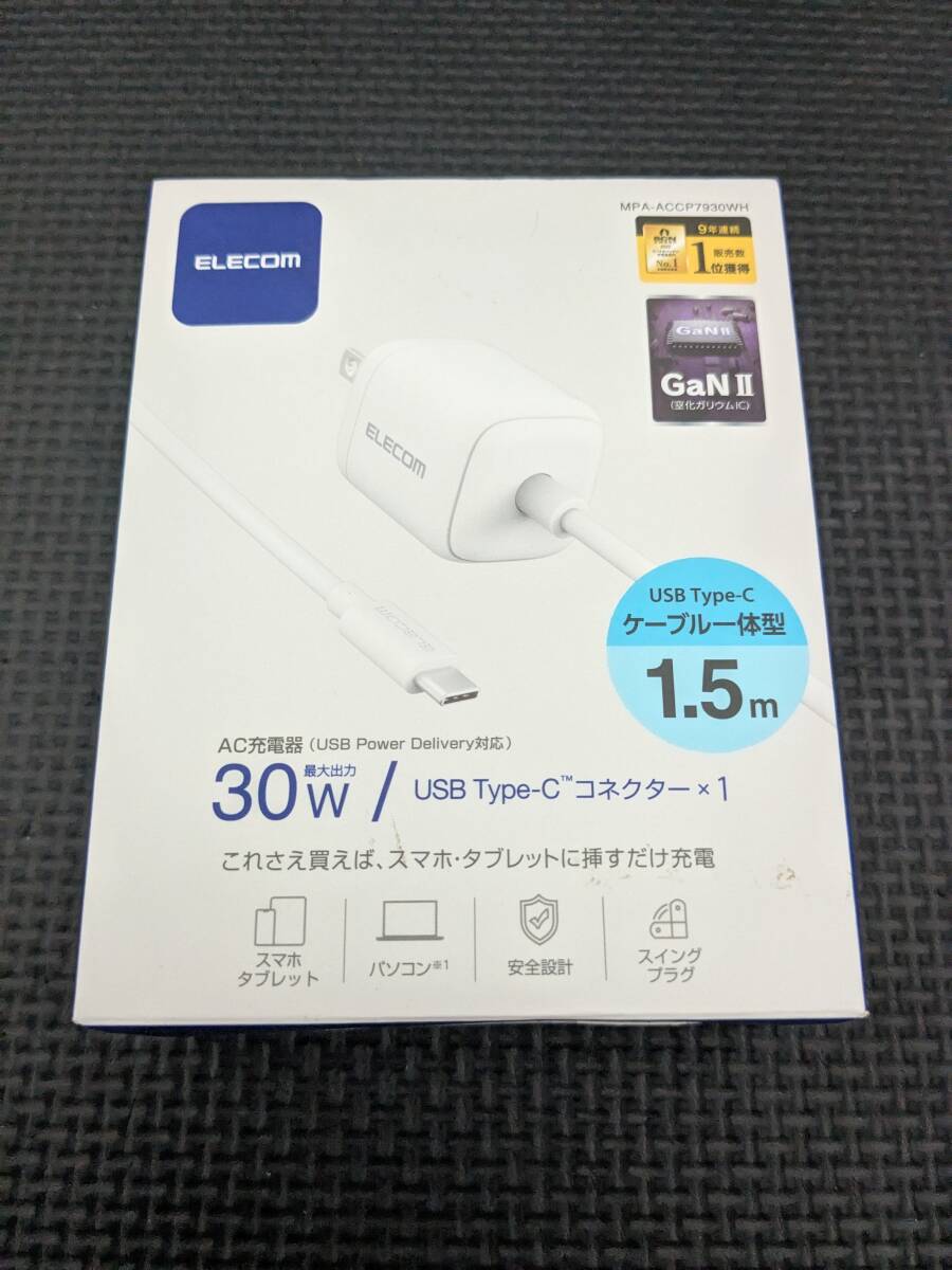 - ◎0710u0728 エレコム 充電器 Type-C 30W USB PD対応 USB-C ケーブル一体型 1.5m 折りたたみ式プラグ PSE認証 ホワイト MPA-ACCP7930WH