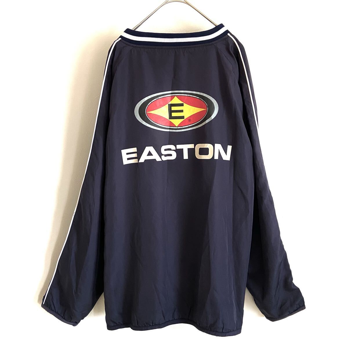 > 希少古着★【EASTON/イーストン】両面ロゴプリント ビッグシルエット/プルオーバーピステ/ナイロンジャケット/ネイビー/衝撃プライス!C45
