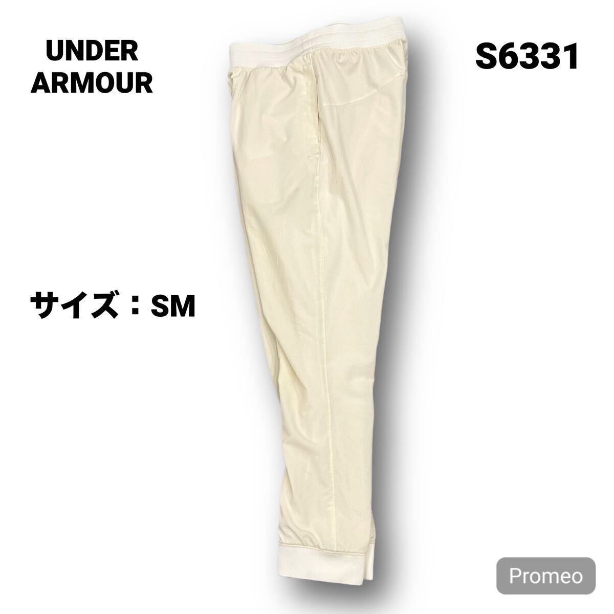> 【S6331】 UNDER ARMOUR アンダーアーマー ジョガーパンツ サイズSM ホワイト 白 プリントロゴ レディース ボトム 最落なし 古着