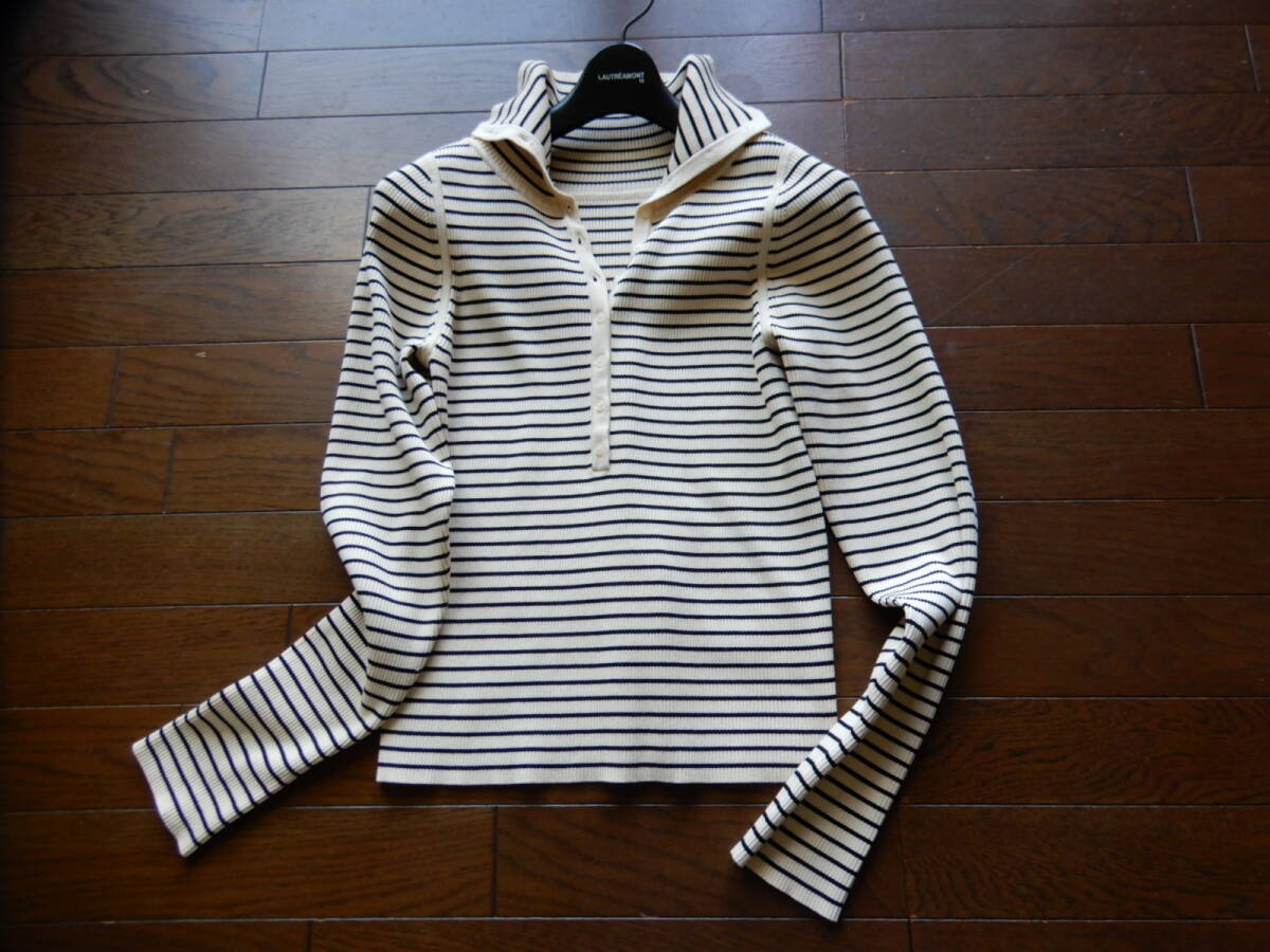 > 【URBAN RESEARCH/アーバンリサーチ】秋冬春 2way大人可愛いタートルリブボーダー長袖ニットプルオーバートップス Fサイズ 手洗いok