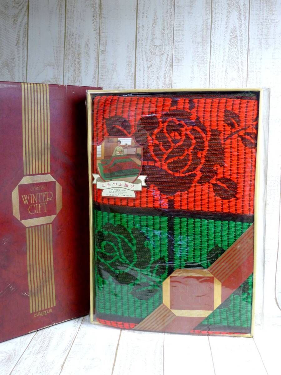 薔薇柄 こたつ上掛け 緑×赤 です。