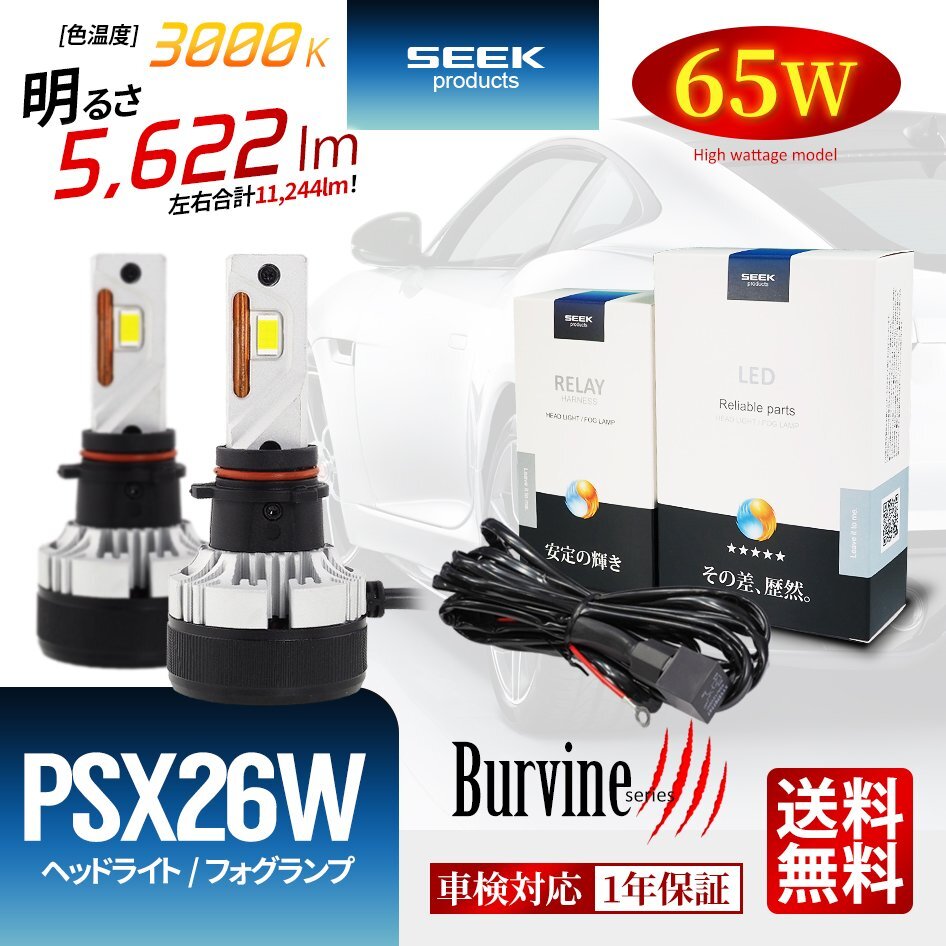 > SEEK Products 左右計130W 11244lm LED PSX26W バルブ イエローフォグ 後付け 11244lm 強化リレー付 1年保証 Burvine 宅配便 送料無料