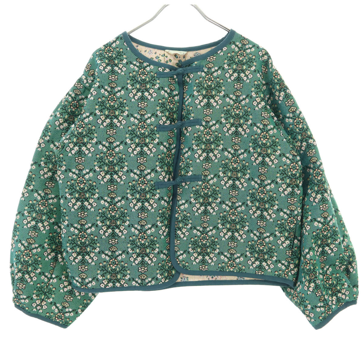 - 美品 SM2 サマンサモスモス 総柄 長袖 ゴブラン織り ノーカラージャケット F グリーン レディース