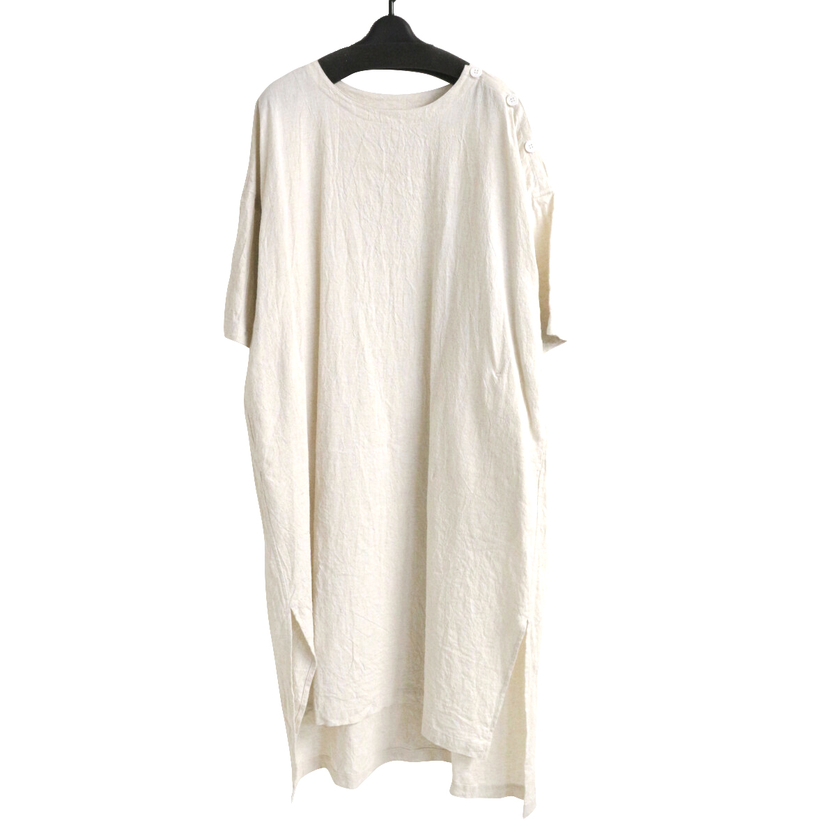 - 新品 TOUJOURS 24SS ウォッシュドリサイクルリネンコットンショルダーボタンサックドレス / ワンピース 1 TM40ND04 トゥジュー