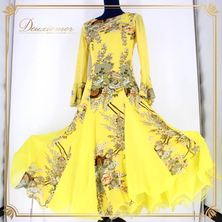 - 社交ダンス 衣装 スタンダード ドレス ワンピース レッスンウェア レディース オールシーズン prima boutique プリマブティック イエロー系